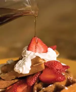 The food was good but pricey. The waitress disappeared so we had to wait another 10 minutes to pay. When the menu says "with strawberries" it means ONE strawberry cut in half.