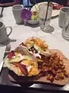 Not the best place but it was the most convenient.to get in out of a rainstorm while touring the Alamo. We had the Nachos and the Sliders which was way too much food for us we only ate half of each.