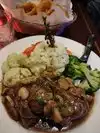 Lunch in this lovely Irish PUB. The entries are hearty. Very for NY sirmoin with a very good puree and broccoli. Only red wine by the glass is not at the level. Nice atmosphere and good service