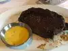 Strip steak was tough and difficult to chew. Had large pieces of gristle. To be honest though I did not mention to waitstaff so cannot comment on how they would have responded. Very crowded and my chair was constantly being bumped into by patrons and staff crossing behind me. Very noisy and difficult to hear conversation from across the table.