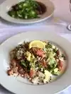 We had a great lite dinner here, sitting by the window looking down the river. Started with a vegetarian sushi roll, which was very tasty. Then my wife had the house salad and I had a seafood Cobb salad which really hit the spot. Service was great, atmosphere perfect.
