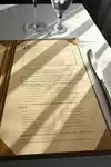 We made a reservation and could only get at 9:15 PM, which was OK with us. When we arrived we were welcomed and shown to the restaurant on the 2nd floor. The air was on very high as it was a warm day, but it was too cold for us, so we were given a table at the terrasse in front of the restaurant. This was very pleasant and we could follow all guests arriving and leaving, it was great. We had a great dinner with a wonderful wine from a good selection, and the service was attentive and friendly.