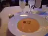 Relaxing atmosphere and the wait staff was superb. The lobster bisque had a luscious creamy lobster taste. My wife had the scallops and I went with the salmon. The scallops were cooked to perfection. They had a nice sear on the outside. When you bit into them they were sweet and fresh tasting. The accompanying risotto provided a creamy, salty and slightly acidic balance. My salmon was cooked medium. It was moist and flaky. The sauce provided a buttery, salty accent to the salmon. We finished with the 10 layer carrot cake. What a way to end. The cake was moist and had all the flavors one looks for in a carrot cake. The frosting between each layer was thick, creamy and slightly sweet. A very enchanting anniversary.