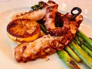 First we had to wait 30' to get a table despite having reserved. My calamari was too salty and sweet and the halibut lacked seasoning. Service was slow and asking us how it was every 15' sounded fake. Overrated and disappointing.