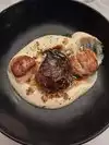 Impromptu dinner last night. Pork with leeks, cherry tomatoes, spinach as a side, textbook. Rib eye steak without bone, I would say exceptional. The only flaw is the gentleman with glasses , tail , grizzled , French - Algerian origin , who , has explained almost nothing of the dishes and was in a great hurry to get us to order that put “anxiety” and made you want to send him to coney Island to wait at wooden tables like a party of unity (where the c...i dance).