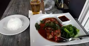 My husband and I had dinner at this resturant as I purchased a Living Social coupon as I love Thai food and we were not dissappointed. We both had the Chicken Masaman Avocado which was absolutely delicious. Thai is my favourite food and I know good Thai food when I taste it. It was fresh and full of flavour and the portions are a very good size. As mentioned we had a coupon so we did not pay full price but even if we did not have the coupon I think the prices are reasonably, we have been to Thai resturants that charge double the price and are not as half as good as the food we tasted at Harrys and sons. They have two new customers, thanks to Living Social otherwise we would never have known about this resturant.