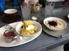 We visited for lunch on a Monday and didn't have to wait for a table (turns out a lot of the shops are closed on Mondays, so not as much of a crowd). Our waitress was very friendly, but seemed very distracted. We had 2 requests for changes to our meals and I watched her write them down. Our meals came without the changes, and we had to send one of them back. She seemed surprised and said - is that a problem? It is if I didn't order it that way! Replacement took forever, Had to track her down for the check and then to finish paying. And this was when it was slow! Hopefully just an off day since the food was good.