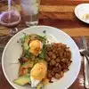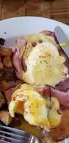 Great vibe in and around restaurant, Very busy on Saturday morning. We pulled the move we do a lot with restaurants that have a bar. "Can we eat at the bar?" Our 1 1/2 hour wait turned into a seat at the bar in 10 minutes. Jenny at the bar was fantastic. Great bartender and very helpful with ordering (this was our first visit). We had high expectations due to reviews and unfortunately we were disappointed. The Eggs Benedict had been pre-made or sat too long in kitchen. The egg yolks were solid and the meat was over done. I think in an effort to have speedy service for patrons the food was compromised. We will try again.