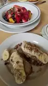 Sunday, 4-14-19, breakfast, never been but it was recommended - not bad - had their bowl of fruit (generous to feed three (3) adults), had their special that morning, some kind of sandwich, not bad, a LOT of cheese...had to keep asking for coffee and water (and though they have a carafe of water on table) we finished it, they took it and never brought back another one, so we had to keep asking them to refill our water, kind of odd, but whatever -
