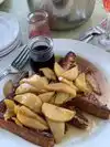 The greeter was just lovely and was able to accommodate our request to sit outside on the patio for our first time visiting. Our server, however, was very pushy for us to order. We didn't have time to go over the menu in length with comments "do you want to order before the party of 15 arrives"? we asked for a minute, we literally just sat down. He comes back "do you know what you want"? Feeling rushed, we just ordered something we thought would be sufficient. We ordered a bottle of champagne which came with mixers of cranberry juice and orange juices to make mimosas. These mixers came in miniature carafes and for four guests this was not sufficient to not have a refill. Our server was non existent after our order, we had to ask a bus boy for refills of the carafes, we had to ask for utensils. We initially asked for two checks, One person on one check, three people on another, that couldn't be done, so we had to pay on one check. The views were really nice, and the weather wasn't too hot to enjoy it, they had umbrellas up to shade you which was also nice. French Toast was $14 with no sides, therefore eggs and any other sides are extra. I feel if our server was more concerned with our group of four as he was with his group of fifteen it would have been a better experience for us.