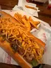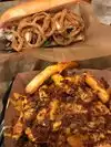 Went to go to Sonny’s but there was a long line and we were cold and starving. This was about 50 feet down. Got the cheesesteak, the French onion cheesesteak and fries. The regular cheesesteak was the best thing. There was a line but it was inside. And getting a table took some time.