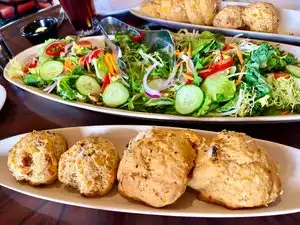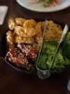 Other people in our group are here before. I never had. Had high expectations. They quickly faded with our server, and the food. Took forever to get drinks that were ordered from the bar. Food was brought out at a snails pace, and wasn't even hot. Never kept up with keeping refills on drinks, barely saw our server. Got better service from Scott than our server. Ask for more bread never received. Waited almost 30 minutes after we ate everything we could from noodles and chicken platter. When we received the plate of chicken thighs it was cold and very burnt. Trying to get our waiter was a lost cause. He never delivered anything that we asked for. Scott was the only one who servers our table. We were tired of waiting for our food to keep coming. We asked to stop the rest of the meal to be brought over. Asked if we could get some sort of refund, since wee were there over an hour and a half and never really got the big part of the meal. Spoke to the manager and he only took off one adult meal. Our dinner for 4 was $200 for bread, salad, noodles, wings, vegetables, dumplings and chicken thighs and the bread pudding!! For what we paid service and food was terrible. Rest if the party who was there before said that was the worst dining experience they had from there. Very disappointed.