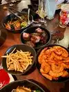 Not the same as it used to be. Mediocre food at high prices. Peel and eat shrimp? Food does not compare to pics online. Two charcoal burned chicken thighs and one that was red at the bone. Chicken wings were tough and dry. Steak was tough and lacking flavor. $125 plus tip for two mediocre dinners just leaves me flat. Glad we didn’t order drinks. Won’t be back again for food.