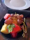 We recently visited ‘Ohana for their ‘all-you-care-to-enjoy’ dinner. Although it is expensive (even more so than usual Disney prices), we thought it was worth it for a treat, especially given the beautiful location, overlooking the Polynesian resort, the friendly staff, the fantastic service & of course, the ‘unlimited/refillable’ food…! We ordered their plant-based dinner menu, which started with a skillet of warm bread rolls (soft, fluffy & a little bit sweet, like brioche or enriched dough) & bowl of mixed green salad (leaves, cucumber, peppers, baby plum tomatoes, red onion, grated carrot & creamy vegan dressing). Soon after, our plant-based skillet arrived - the first was filled with seasoned noodles, stirfry veg, broccoli florets & edamame dumplings (crispy on the outside & coated in chilli garlic sauce); the second was filled with plant-based ‘meats’, including teriyaki beef & broccoli, pineapple-glazed chicken & huge sausages. The dishes are delivered to the centre of the table, then diners help themselves & reorder more skillets (or individual items) as & when needed. We ordered extra salad, as well as more noodles, stirfry veg & teriyaki beef, which arrived quickly after we requested it. Finally, we finished with pineapple coconut bread pudding for dessert, which was moist, tart & flavourful, served with soy chocolate ice-cream. We left feeling very satisfied (& rather full)! Expensive but worth it!