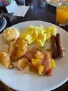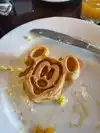 Great opportunity to meet Pluto and Mickey Mouse - and others! Mediocre breakfast skillet of sausage, bacon with sweet jam topping, sliced potatoes and scrambled egg - and a sweet scone. We asked for butter which came immediately. We could have eaten as many skillet-loads as we wanted! Unfortunately I do not have a sweet tooth, but my husband enjoyed the sweet bread, ultra-sweet juice and Mickey Mouse waffles with maple syrup. Major complaint was that we waited (along with many other folks) half-an-hour for a reservation which we had made months ago - with no apology.