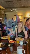50th birthday girls trip and we opted to go to Disney without the kids! The characters did a parade and then each one stopped at each and every table. Lots of opportunity for photos with Lilo, Stitch, Mickey and Pluto. Food was served "family style" which means they bring a big platter and everyone serves themselves from the main dish. Basic breakfast - eggs, sausage, ham with pineapple, home fries - and of course Mickey shaped waffles with a few waffles showing Stitch face. As far as character meals, this was priced significantly less than Chef Mickey and we felt it was a fun atmosphere with tasty food.