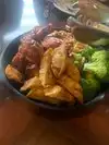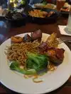 Very disappointed! This place used to be a family favorite .Never Again! We started with mixed greens that were fine how can you mess up a bowl of lettuce? Then can a bowl of stuck together cold noodles that had the taste of glue .pot stickers ,I could have just at those ,they were the only hot and tasty thing we ate Next up drowning chicken wings ,the sauce was was too sweet and too much Then a bowl of what I think was chicken thighs ,again drowning in a sauce and way over cooked ,it is hard to overcook a chicken thigh and dry it out like shoe leather ,but they managed to do it . Next up a plate of, 3 chuncks for the whole table, of practically raw beef also in the mysterious sauce .It was not good ,hard to cut and stringy . For the finally wand a gluten cube they are calling bread pudding with a scoop of ice cream and a runny caramel sauce To say this was a terrible dinner is an understatement! I know things change but if it ain't broke don't fix it should be the motto A few years back before the dreaded VID this place was one of the best! Live cookers on the grill ,people coming around with fresh off the grill meats !,wings ,noodles and a salad dressing that I am thankful I have the recipes for so I can make them at home.A bread pudding that could land you a husband that had a flaming rum sauce you wanted to like off the plate it was hot and the ice cream would melt into it.I also have that long lost recipe They also used to get the kids up for some fun activities teach them a luau and give them a lei . My advice save your money find to old recipes and have a luau at your house ! You can thank me later