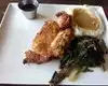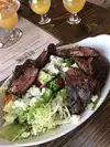 Finally, a real brew pub near the house. The milk stout is on point. Wings, also very good. Steak frites? Eh. I dont like my steak pre cut and with the salad dressing creeping up on it. Steak was done right (medium), but the plate presentation was a bit of a mess. I shall try your onion rings next time. Friends both had the chicken sandwich, which they say was very good