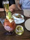 You can't decide what kind of beer get there are beer flights, so you can taste more than one to find out which is your favorite! Was really impressed with the food menu! We share dishes such as a cheeseburger, beet salad and Wood fired Octopus with a kick of spice! Great atmosphere spacious for big groups!