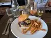 Had a basic but very comforting burger with two Trendi the Fifth brews. This is a hazy double IPA that really has a strong grapefruity taste. Very refreshing, and I'm not much of an IPA guy. Tasted the brown ale as well, with an unmistakable maple syrup smell and taste. Friendly servers as well, cool open and rustic space.