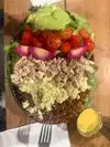 Fabulous service and food was fantastic. We sat by the kitchen and saw all dishes expedited to tables, fresh, ample and beautifully presented!! The vibe in restaurant is buzzing! Seating was fast and nice variety of tables in and outside.