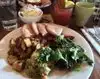 We stopped at this wonderful establishment for brunch - and very glad we did! Relaxed and earthy vibe (lots of live plants) and quick sincerely kind service! I had the Green Eggs & Lamb (very tasty and a large satisfying meal at a reasonable price, $12), my wife had French Toast (very sweet & rich), and my daughter had the Turkish Breakfast (she loved it!). We loved our meal and experience here; my daughter has visited here many times and highly recommends this eatery and full bar for a visit anytime of day. I eagerly look forward to a return visit!