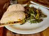 had the lamb sandwich which was very good. you have to try the fried olives with hummus. we had to wait 10 minutes for lunch on saturday around 1pm. friendly service.