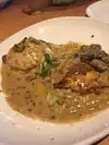 We had the Shrimp Scampi on the lighter menu. It was very tasty with plenty of large, succulent shrimp, but a little light on the vegetables and heavy on the pasta. Mine was with gluten-free pasta at my request which was cooked just right. It's always nice to eat at an Italian restaurant that offers a g/f option. Our server was friendly and attentive and the food come out promptly. The house salad was also good - nice dressing, but heavy on the iceberg lettuce with only a little romaine. We enjoyed our meal and appreciated the efficient service as we only had about an hour before we had to be somewhere else. Overall, we were pleasantly surprised.