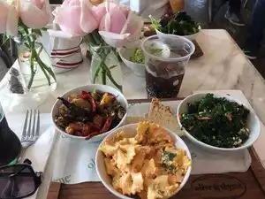 This is a very busy place, so be prepared to wait a bit. Olive & Thyme offers a great variety of food that is delicious and healthy. I tried the trio of salads and all were excellent! We also ordered a cookie to go--yum!