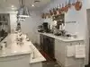 The decoration is white & bright. Feels garden like. Marble table tops. Exquisite (and expensive) culinary gifts for purchase. It's fun to check out all of the offerings. Lunch food was yummy. The chopped kale salad my friend ordered was particularly delicious. The grilled cheese with bacon (my choice) was very good, maybe a bit dry. Presentation of food is wonderful. Definitely eat here. Our after meal coffees were a bit disappointing. The decaf was a bit thin and my friend's espresso arrived cold. Bottom line, visit for the food and not the coffee. I would return here.
