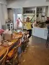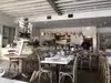 This place is fabulous. Shabby chic tables chandeliers fresh flowers in milk pitchers. Lovely lighting. Great menu with vegan options. Very lively at breakfast. Excellent bakery and they also have a lovely store section with candles crystals all kinds of beautiful options.