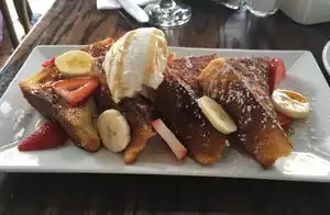 The brunch menu featured tasty french toast, with strawberries and bananas (for $12). But it took 40 minutes to arrive! The coffee was $4 a cup, but there were free refills. The small bistro opened up with its outdoor tables, and was very relaxing as we waited, and waited for the main course.