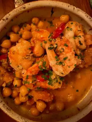 Can't decide what was our favoroite - octopus, charred eggplant, shrimp on shrimp, patatas bravas, beets, clams, black rice.... so many selections and the delicious bread. Super service mid week. Paella good but seemed a bit short on seafood for the price but we were stuffed so didn't mind so much. Do have sherry with creme caramel for dessert.