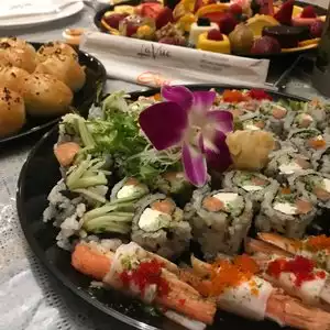 The service, food, music was the best! Haven't had this type of service in the longest time. Food was fresh, delicious, great variety of salads, sushi, meats, fish, something for everyone. Our main server was Misha and there were about 2 others at our table. Service was quick, polite and right on point. There was a male and a female singer, they were so much fun and so alive.