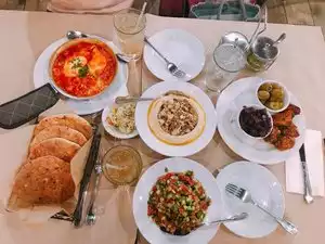We went there based on different reviews and although it was good, I can't say it was the best. The place is big and you have plenty of space to go with friends, family, etc. We ordered: - Sampler dish (Labane, Babaganoush Eggplant, Oren’s Eggplant, Greek Style Eggplant, *Marinated Beets, Moroccan Carrots): it is great if you wan to try different dips, for us our top three were Babaganoush, Oren's Eggplant and Labane. -Traditional Shakshuka: the shakshuka was ok, but we have tried better ones. Maybe this one had a bit too much taste to tomato. -Hummus Jaffa: this one was delicous, it was soft and tasty. We have to mentioned that we ordered quite a lot of food and with one dish less, it would also had been better. All the dishes were served with a choice of 2 pita (white or whole wheat). Staff was friendly and helpful. But in general, we won't repeat again.