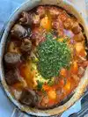 Four of us ordered different items, we were all VERY satisfied ... offers varied from a traditional breakfast to straight Israeli food. My shakshuka had a nicely sweet but spicy tomato sauce with turkey sausage added.
