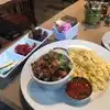 I had breakfast and I believe this is a place everyone must try because of the opportunity to try and taste it’s special dishes. This was so delicious, and so many ingredients in a single meal- a real celebration! Even the coffee- the latte I had was great. Next time (tomorrow probably) I will try the Shakshuka which looks great on the adjacent table...