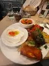 Music slightly too loud, but otherwise perfect. Both hummus and meat dishes were delicious. We had a pram with a baby and were very happy to find there was space for it. Lots of nice hummus-variants