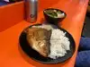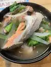 I have passed by this place many times but just saw in on youtube so I decided to go. I love Filipino food and make it at home also. I am not Filipino. I saw the salmon Sinigang advertised on youtube. It sounded so good. We got there and I don’t think they made enough that I had to pick half and half, so I picked the pork adobo and the soup. My friend picked the chicken adobo. The food came pretty quick. The salmon sinigang is made with the whole fish so I was dissecting the fish. The broth of this soup is so good. It has mustard greens and a sour flavor that is so good. I wish I could make this broth. I wished there had been more salmon meat. The pork and chicken adobo were okay. I like mine better. I do want to make that broth though. I am gonna try in the fall. Also I was eating and got a long piece of plastic in my soup. Not sure how it got in there but I brought it to their attention and they apologized. Also I was lucky to get to try the soup because they ran out….might have been the youtube video.