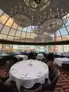 Dined at this iconic restaurant inside the Plaza’s hotel glass dome. Requested a table overlooking at the famed Fremont street light show. The ambiance was classic and elegant. We were celebrating one of our son’s college graduation. We ordered a Ribeye, a Filet Mignon Hibachi and Tomahawk. We also ordered a side order of smashed potatoes, creamed corn ( delicious) and some glazed mushrooms. The steaks were flavorful and succulent. The sides were excellent especially the cream corn. A must go restaurant if in the area. Lots of history and several movies were filmed there. The service was very good. The prices are reasonable. Highly recommend it.