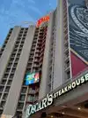 I was a hotel guest at the Plaza Hotel, so it made sense to give "Oscar's Steakhouse" a try. Besides, some say/write that Oscar's is amongst the best steakhouses in Las Vegas. It is named after former city of Las Vegas Mayor Oscar Goodman I arrived and advised the hostess that I would be dining alone. Normally in this situation, I would eat at the bar--but all the seats at the bar were taken. Interestingly, I was able to get a seat on the outdoor patio, aside the glass wall overlooking Main Street. This provided a view of Circa and Fremont Street's LED display canopy. I ordered: a "Carolyn's" 16oz prime rib ($51.00); a baked potato ($12.00); a wedge salad ($14.00); and a Bombay Sapphire gin & tonic ($15.00). With tax ($7.71), my ticket was $99.71 before gratuity. I asked for a rare cut of prime rib. The beef arrived with a very good temperature. The meat was tender and had both good taste and texture. In an a la carte situation, I have received baked potatoes big enough for two. The potato received here was large, but not massive. The salad was nice visually, and in taste. I won't hold back: For a restaurant at this price point, the service was "good", but a little uneven. I didn't say anything, but towards the end of the dinner service, the waitress thanked me for my patience and admitted that the outdoor patio had just recently opened, and they were still working out some kinks. The price for a meal here is not inexpensive. But Oscar's provides ambiance. They have their rotunda dining room with views of Fremont Street for year-round dining--and it now has a new outdoor dining area for fair weather seasons. Check the website for operating hours--but apparently, it is only open for dinner service.