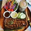 Funky cool and delish! We had the tiger ribeye and chose sticky rice and Thai salad. Appetizer of samosa with cucumber salad. It was delish.