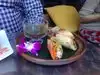 The restaurant is attractively decorated and has an informal atmosphere. Service was a bit slow, but the platters we ate were worth the wait. We enjoyed our meals and will return soon.