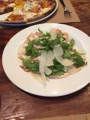 We booked an early reservation for dinner and were pleased to enter a bright busy twinkling dining room. We weren't so pleased to be led around the back the restaurant to the opposite ambiance - a depressing, tomb-like second dining room. Quiet and spare, the windows were almost fully covered, and the lighting was so poorly designed, gray and shadowy, Nothing warm and convivial about it. That said, the food was quite good. The pizzas were well seasoned and inventive. The carbonara was a creative interpretation of the classic and very good. Only the short ribs were slightly disappointing- underseasoned and a bit dry. The service was very attentive and good. All in all a good night - try to sit in the main room if you can !