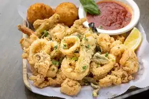 We really just wanted a cafe and ended up with bri pizza and calamari. The calamari fritti were very good, not greasy and very crispy!! And the pizza was awesome! - just like in Italy! Clear Recommendation!!
