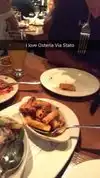 We had an excellent dinner at Osteria Via Stato. We shared the chopped salad, chicken penne with a rose sauce and seafood stew. This was lots of food for two average hungry people. The salad and chicken penne were excellent and the seafood stew was very good. Service was friendly and attentive. Prices were reasonable. Id recommend this restaurant highly.