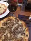 An interesting Italian style pizza with a very crispy thin crust, all baked in a wood-fired oven. Truly delicious and with very friendly waiters.