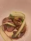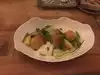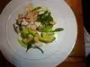 I had a crispy pork and it was fat back , yep that's it fat ! The stuff you add to flavor food really bad! The we got the soft shell crab ! It was a baby crab fried and cut in half ! Then we tried our halibut , that was a beautiful peice of fish , but over sauced and way over cooked, the person next to me had ordered salmon... What a shame to see it cooked to death and she was grinding salt all over it to eat it( mind you that I don't know her she was with another party )