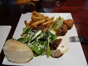 My daughter and I went there before a concert, and it was the only restaurant with immediate (outdoor) seating. Our waitress was very attentive, so the poor rating is just because of the food. There's something not right about the hamburger - only half got eaten, which is abnormal for my daughter! The cheesy tots were just OK. I ordered the nachos with chicken, and when it was served, I thought they'd forgotten to add the chicken, it was so sparse. I'm not exaggerating when I say it was on <10% of the chips. In fact, the ONLY topping that was generous was the cheese sauce. It was like there was a tablespoon of beans, a tablespoon of chopped tomatoes, and a tiny amount of chicken, which included a bone. Yuck.
