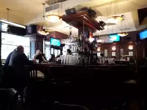 A nice bar with happy hour I think between 5 and 7 so worth a visit. Nice cosy pub with a nice bar to sit at. We didn't eat here but saw the food coming out it looked really good and big portions. Worth a visit even if it's for a quick pit stop.